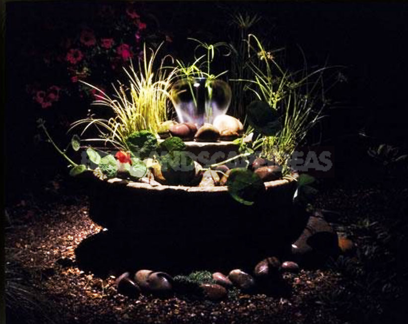 The idea for owners of small garden ponds. This stone bowl would look boring if it were not for the multicolored glowing balls. Now these lamps are not difficult to buy, in my opinion, so the idea is quite feasible.